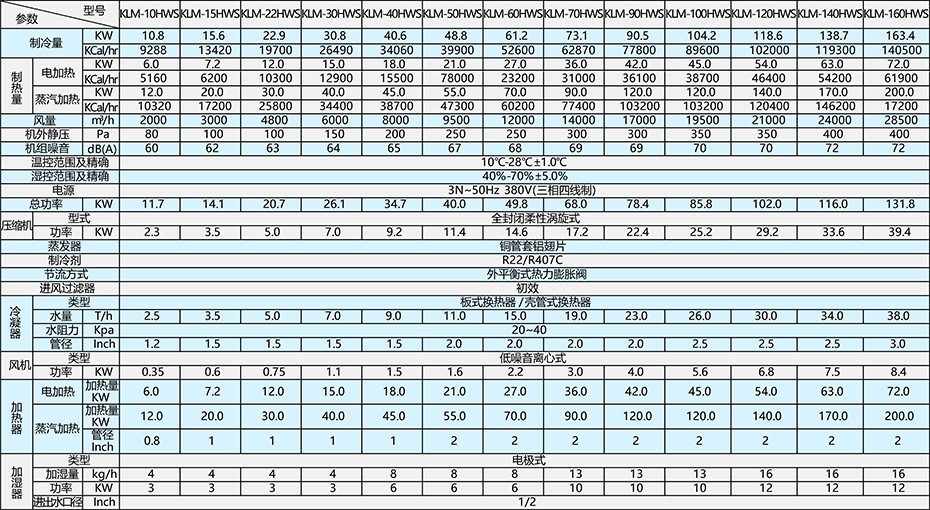 水冷機組參數表